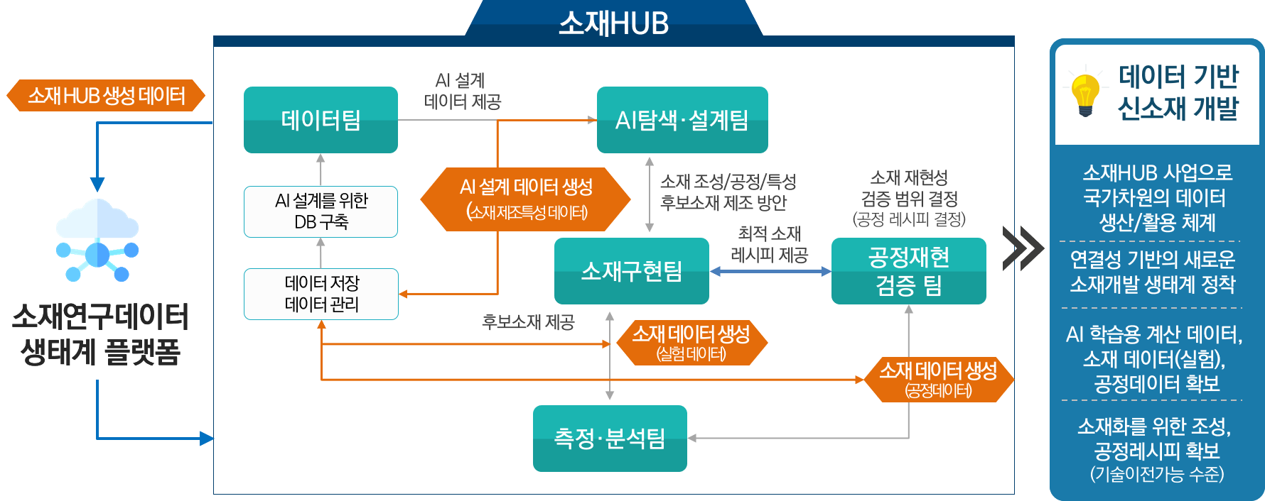 우리나라도 작년 4월 「소재 연구데이터 활용 생태계 구축 전략」을 발표하고 인공지능‧데이터를 소재 연구에 활용하는 연구실인 소재 거점(허브, HUB)를 10개 지정한 데 이어, 올해도 6개를 추가 지정한다.