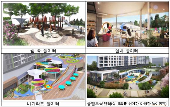 아이의 안전을 위한 주차장 100% 지하화 등을 추진하고, 숲 속 놀이터, 실내놀이터, 비가와도 놀이터 등 다양한 어린이 놀이공간을 제공하여 언제나 아이가 즐겁게 놀 수 있는 공간을 제공한다.