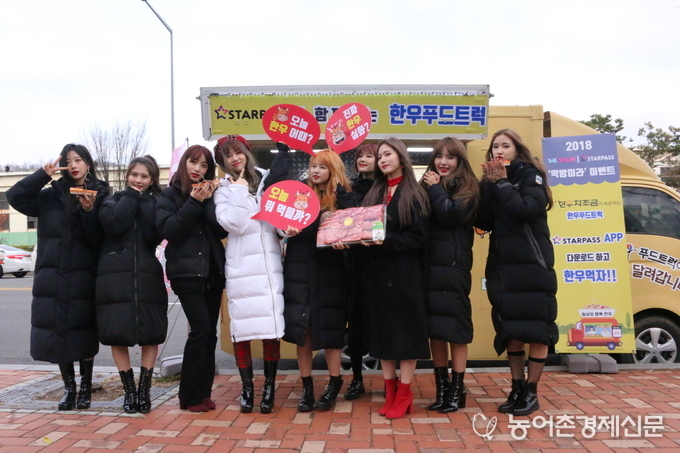 이날 한우자조금은 <더쇼> 방송 녹화를 마친 아이돌 그룹 ‘네이처’, ‘디크런치’, ‘드림노트’에게 한우 푸드트럭을 활용한 즉석 한우 불고기와 채끝 시식을 비롯해 한우선물세트를 증정하고, 현장을 찾은 팬을 대상으로 무료 시식회를 진행해 큰 호응을 얻었다.