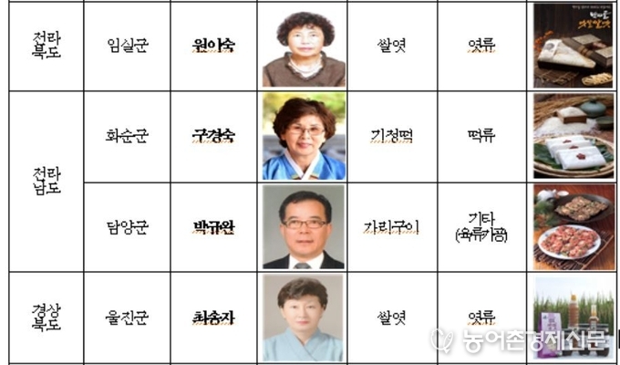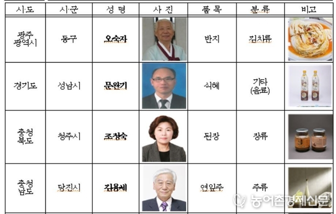 이번에 신규로 지정된 식품명인들은 모두 9명으로 지난 7월부터 각 시‧도의 추천과 서류‧현장심사 등 적합성 검토를 거쳐 11.30일 최종 지정공고가 되었다.