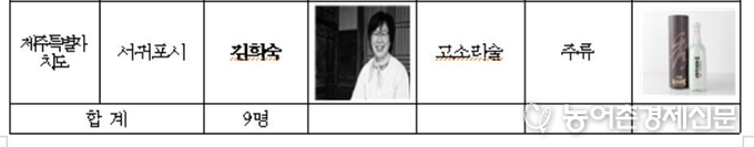 * 품목별 지정현황(78명): 식품 53, 주류 25
