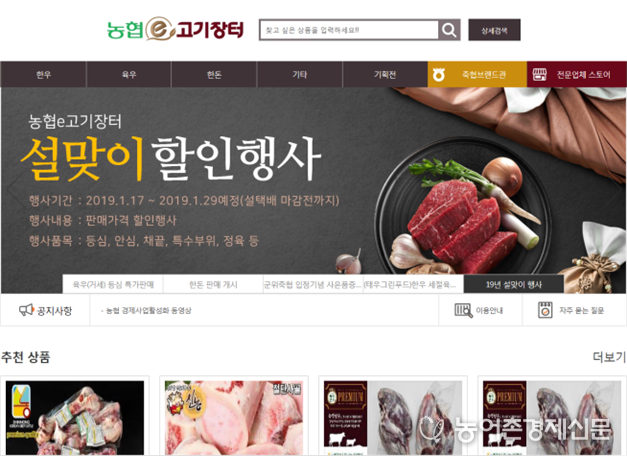 농협 e-고기장터의 금번 행사 할인기간은 2019년 1월 17일부터 1월 29일까지이며 온라인(https://www.nh-ansimb2b.com:8101) 및 모바일을 통해서 구매 가능하다.