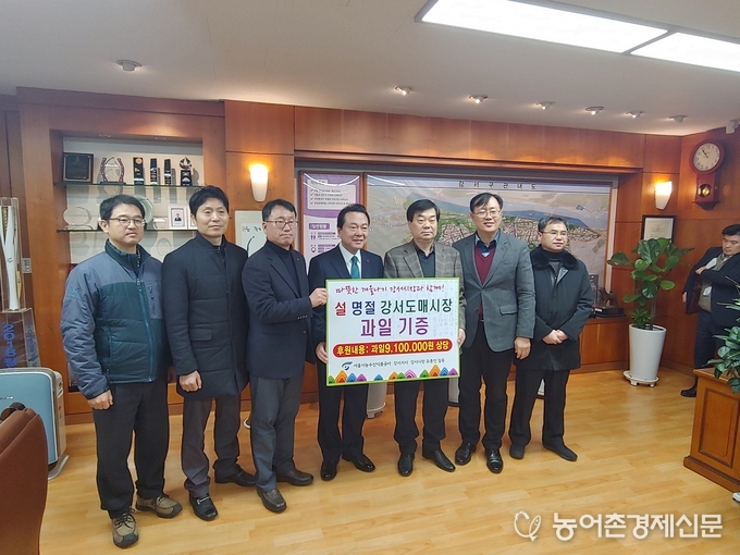 한편, 강서도매시장도 강서구 내 사회복지시설과 소외계층 이웃의 따뜻하고 정이 넘치는 명절을 지원하기 위해 지난 1월 23일 공사와 강서도매시장의 유통인단체장들은 강서구청을 방문하여 과일상자 등 전달식을 개최하였다.