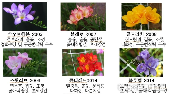 농촌진흥청(청장 김경규)은 13일 국립원예특작과학원(전북 완주군)에서 아름다운 색과 은은한 향을 내는 국산 프리지아 평가회를 연다.