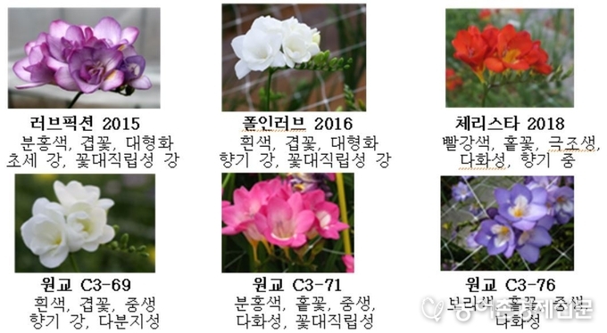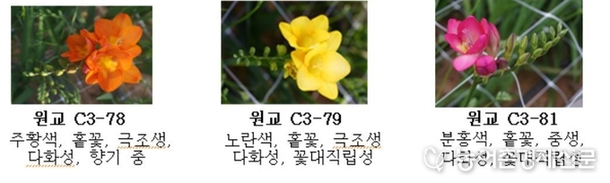이번에 개발한 '원교 C3-78' 계통은 주황색의 홑꽃 중대형화로, 자람세와 꽃대직립성이 강하고 개화도 빠르다. 프리지아는 11월부터 12월께 출하하기 위해 일반적으로 알뿌리(구근)에 저온 처리를 하는데, 이 계통은 저온 처리를 하지 않아도 20일 이상 꽃이 빨리 핀다.