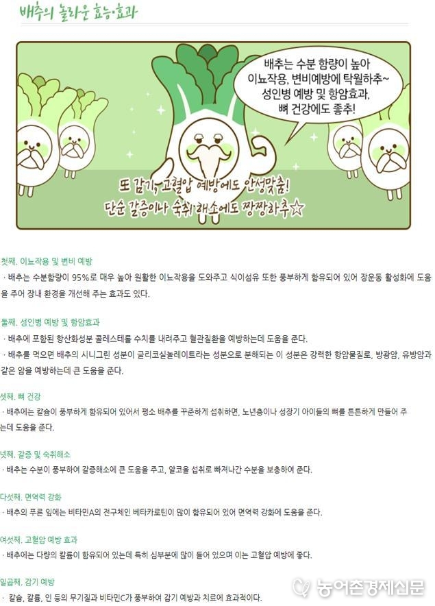 - 좋은 배추 고르는 방법, 가격동향 등 정보 전파로 소비확대 기대 -