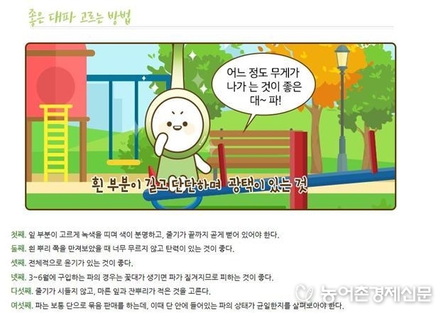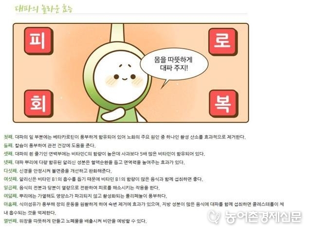 “대파는 우리 음식에 꼭 들어가는 대표적인 향신 채소로 비타민C가 풍부해 감기예방과 피로회복에 도움을 줍니다”