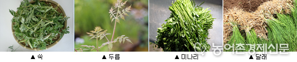 농촌진흥청(청장 김경규)은 일교차가 큰 환절기를 맞아 춘곤증을 이기고 건강을 유지할 수 있도록 약초이면서 나물로도 즐기기 좋은 작물을 소개했다. ※ 괄호의 한자는 약재명