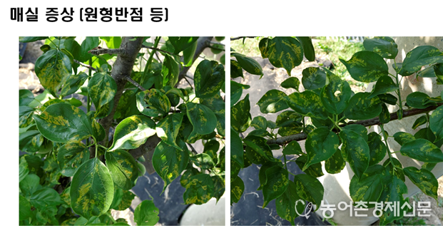 자두곰보병 의심 증상을 발견한 농가는 가까운 도 농업기술원, 시군 농업기술센터나 농촌진흥청(농업기술상담 1544-8572)에 신속하게 신고해야 한다.
