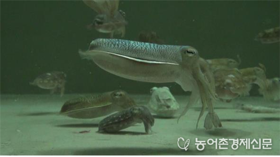 해양수산부(장관 문성혁)는 인공으로 부화한 갑오징어를 어미로 성장시켜 다시 알(卵)을 받아 부화시키는 전(全) 주기적 양식*기술을 국내에서 처음으로 개발하는 데 성공하고, 이 기술을 바탕으로 민간업체와 현장양식 시험에 착수하였다.