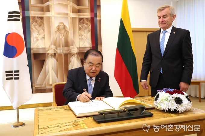 러시아와 발트3국을 순방 중인 문희상 국회의장은 리투아니아로 이동해 현지시각 6월 3일(월) 오전 프란츠키에티스(Viktoras Pranckietis) 국회의장, 그리바우스카이테(Dalia Grybauskait?) 대통령, 스크베르넬리스(Saulis Skvernelis) 총리 등 리투아니아 인사들과 잇따라 만나 양국 간 교류확대 및 경제협력 증진방안에 대해 의견을 나눴다.
