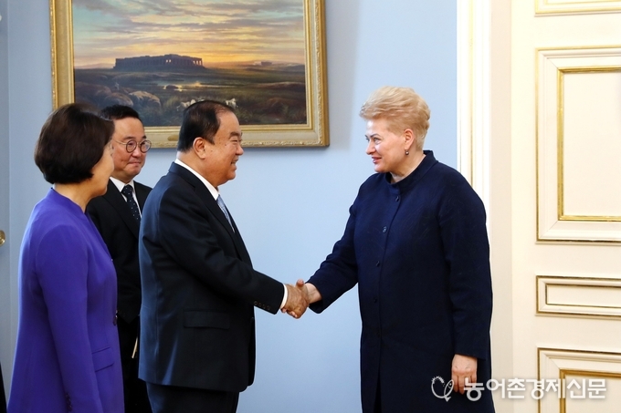 프란츠키에티스 의장과 면담을 마친 후 문 의장은 리투아니아 대통령 궁으로 이동해 그리바우스카이테 대통령을 만났다.
