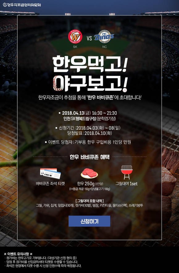 l 한우자조금, 오는 13일 인천SK행복드림구장에서 야구팬을 위한 이벤트 마련