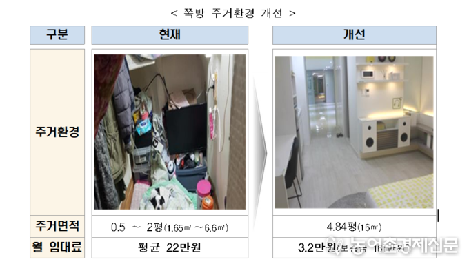이번 사업을 통해 쪽방 주민들은 기존 쪽방보다 2~3배 넓고 쾌적한 공간을 현재의 20% 수준의 저렴한 임대료로 거주할 수 있게 된다.
