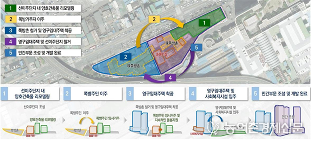 사업기간 중에도 쪽방주민과 돌봄 시설이 지구 내에서 안정적으로 정착할 수 있도록 ‘先이주 善순환‘ 방식을 적용한다.