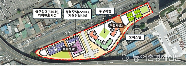 사업구역은 2개 블록으로, 복합시설1에는 쪽방주민들을 위한 영구임대주택 370호와 신혼부부 등 젊은 층을 위한 행복주택 220호를, 복합시설2에는 분양주택 등 600호를 공급한다.