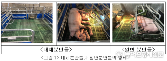 국립축산과학원은 일반분만틀과 대체분만틀에서 사육한 어미돼지의 행동특성을 비교 실험했다.