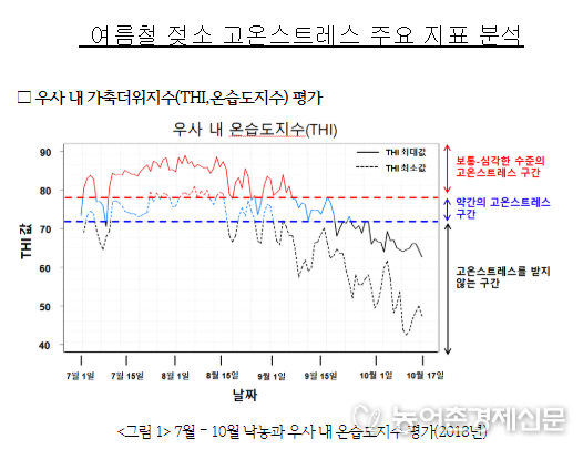 임신한 젖소(임신우)는 임신하지 않은 젖소(비임신우) 보다 고온 스트레스 영향을 많이 받는다.