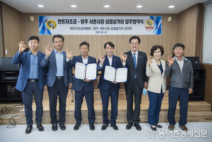 6월 18일, 한돈자조금관리위원회(이하 한돈자조금)가 청주 서문시장 삼겹살거리를 ‘한돈 인증거리’로 선정하고, 해당 상인회와 ‘청주 서문시장 삼겹살거리 한돈 인증 협약식’을 열어 업무협약을 체결했다.