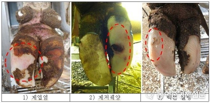 농촌진흥청(청장 김경규)은 젖소 생산성에 영향을 주는 발굽질병의 원인과 관리방법을 소개했다.