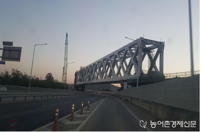- 공단은 추진대를 활용하여 교량을 이동설치하는 압출공법을 적용하여 도로의 교통흐름을 방해하지 않고 설치하였다.