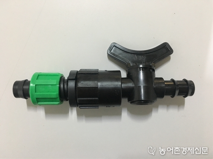‘압력보상형 지선밸브’는 경사지 균일관수를 위해 개발했지만, 대면적 관수 시 발생하는 문제점도 해결할 수 있다. 펌프와의 거리에 따라 수압의 편차가 발생하는데, 대면적 노지는 물론 점적테이프를 많이 사용하는 시설과채류에서도 균일하게 관수할 수 있는 효과가 있다. 기존에 사용하고 있던 점적테이프 밸브만 교체하여 손쉽게 많은 효과를 볼 수 있다.