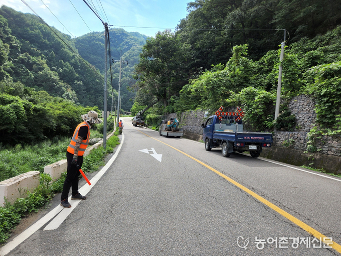 지난 1일부터 시행한 이번 정비사업은 지방도·군도·농어촌도로 6개 노선 41.3km를 정비할 계획이며, 장비와 도로 보수원 등 전가용인력을 총 동원한다.