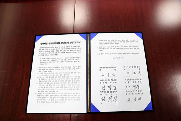 서울시농수산식품공사(사장 박현출, 이하 ‘공사’)는 청과직판상인협의회(협의회장 김이선, 이하 ‘협의회’)와 4.28일 공사 대회의실에서 가락몰 이전에 대해 최종적으로 합의하였다고 밝혔다.