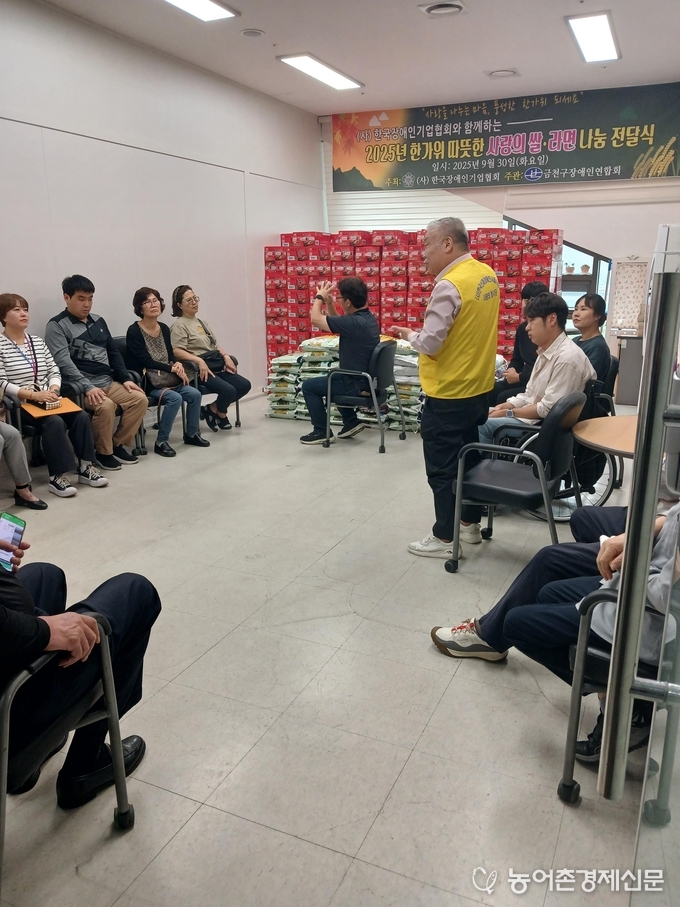 금천구 장애인단체연합, 금천구 중증장애인자립센터, 지역 독거어르신, 효 요양병원 산업재해 입원환자, 취약계층에게 쌀과 라면 등을 기부하며 2025년 10월 6일 추석을 맞아 풍성하고 행복한 명절을 보낼 수 있도록 온정을 나눴다.
