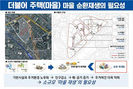 먼저 원도심재생사업의 기반구축을 위해 △ 원도심 전담 부시장 임명 △ 인천경제청에 버금가는 도시재생총괄 전담기구 신설 △ 현장소통센터 설치를 통한 민관 협업 강화를 통해 강력한 행정지원체계 및 소통형 재생사업을 추진하겠다고 밝혔다. 현장소통센터는 사업단계부터 주민들과 긴밀하게 소통하고, 정보를 공유하는 주민밀착형 지원기구로서 역할을 하게 된다. 또 노후 저층 주거지는 전면 철거방식을 지양하고, 기존 마을의 모습을 유지하면서 원주민의 의견을 반영한 인천형 도시재생모델인 ‘더불어 마을’ 추진을 제안했다. 원주민들을 쫓아내는 재개발이 아닌, 원주민들이 중심이 돼 거주공간을 개선하고, 공영주차장, 작은도서관, 마을공부방, 어린이놀이터 등 공공시설을 구축하도록 한다는 구상이다.