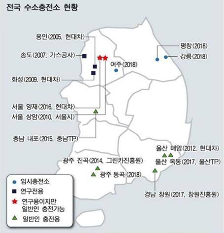 하지만, 현재 구축된 수소차 충전소는 14곳에 불과하고, 그나마 일반인 사용이 가능한 곳은 8~9곳에 불과하여, 수소차 이용자들에게 충전소 부족 문제는 수소차 보급의 가장 큰 장애 요인으로 작용하였고, 또한 현재까지는 수소차의 주요 보급지 위주에만 충전 인프라가 구축되어 수소차의 장거리 이동에 큰 제약을 받아왔던 것도 사실이다.