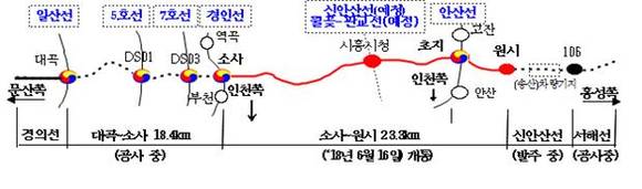 소사~원시선은 부천 소사역을 출발하여, 시흥시청역을 지나, 안산원시역까지 23.3㎞ 구간 정거장 12개소를 지나며, ‘11년 4월 착공 이후 7년 2개월간의 건설공사, 시설물 안전검증 및 영업시운전 등을 거쳐 16일(토)부터 영업을 시작할 예정이다.