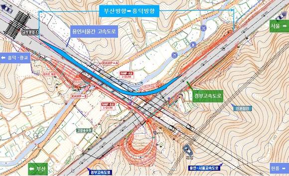 - 용인서울선 흥덕방향에서 경부선 연결로는 별도 없음