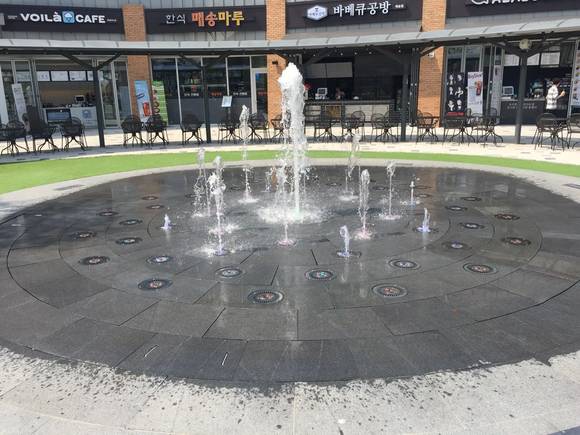 지난 4월 20일에 개장한 서해안선 매송휴게소에는 중앙광장에 어린이를 위한 놀이시설과 바닥분수가 설치돼있다. 어린이들이 뜨거운 햇볕아래 바닥분수 물길 사이를 뛰노는 모습을 보며 더위를 식힐 수 있다.