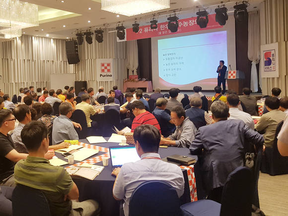 2018년 7월 25일-퓨리나사료 12지구(영업이사: 이선복)는 양평 대명리조트에서 물 맑은 양평 한우 퓨리나 한우사랑 우수농장의 날 행사를 성공리에 가졌다. 이번 행사는 한우 거세 고급육 대표 브랜드 물맑은 양평 한우 농가들이 육성우 관리를 통해 놀라운 일당 증체 결과를 공개하여 더 큰 의미가 있었다.