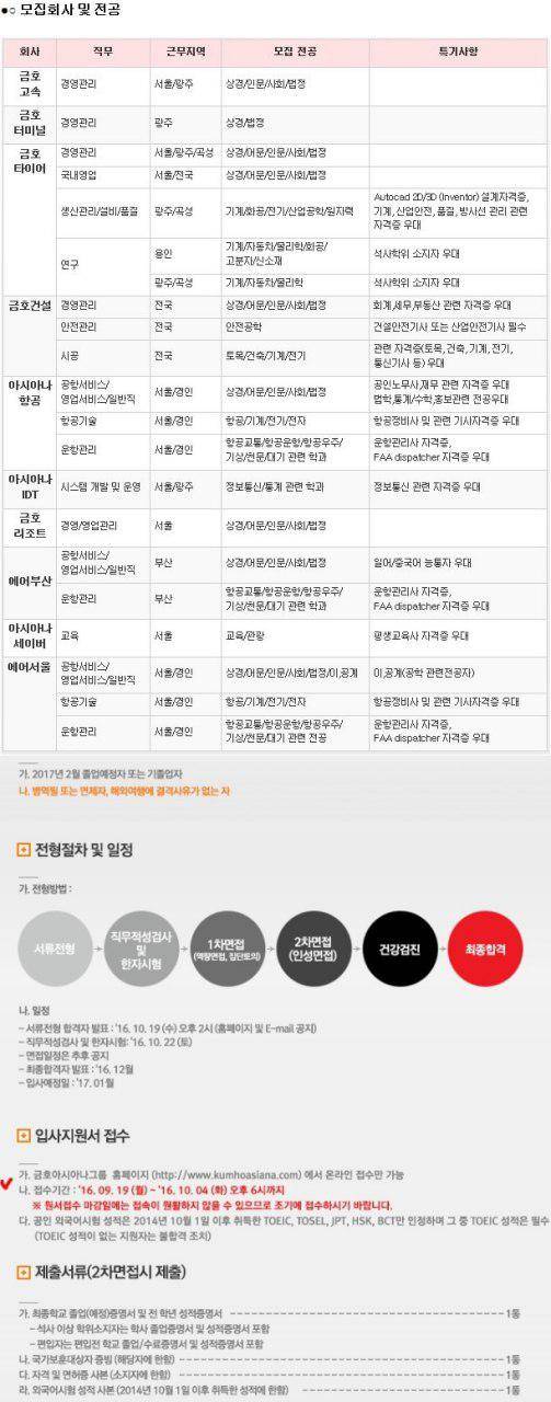 - 2016년 하반기 금호아시아나 그룹 공채 모집 공고