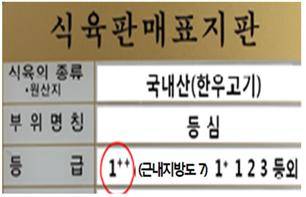 《 1++등급 쇠고기 등급표시 예시 》