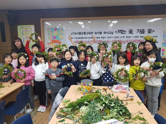 한국농수산식품유통공사(aT, 사장 이병호) 농식품유통교육원(원장 오정규)은 지난 달 30일(금) 수원 명인초등학교에서 3-4학년을 대상으로 ‘먹는 꽃’을 주제로 농식품 독서교실을 열었다.
