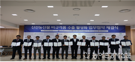 농림축산식품부(장관 김현수, 이하 농식품부)는 2020년 5월 15일 농산물 비규격품을 원료로 한 가공식품 수출을 촉진하기 위해 한국농수산식품유통공사(aT)·4개 품목 생산자 대표 수출회사(코파(KOPA, 파프리카), 케이베리(K-berry, 딸기), 케이그레이프(K-grape, 포도), 케이머쉬(K-mush, 버섯))·가공 및 해외 진출 프랜차이즈 업체 등 11개사가 참여하는 다자간 업무협약을 체결하였다.