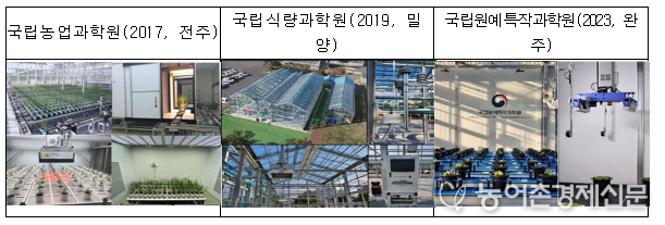 * 농과원 표현체연구동(작물 영상을 활용한 표현체 기초기술개발), 식량원 영상분석연구동(초분광영상을 활용한 노지작물 생육 특성 진단), 원예원 표현체연구시설(다분광과 3D 등 복합센서를 활용해 원예작물 선도모델 발굴)