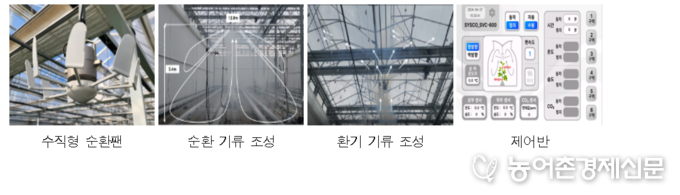 또한, 겨울철 온실 상하부 온도 차이를 4.6도에서 0.2도로, 상대습도 차이는 27%에서 5% 이내로 줄여 온실 내부환경을 균일하게 유지했다. 이로 인해 난방기 운전 시간도 줄어 난방 연료도 13.3% 절감했다.