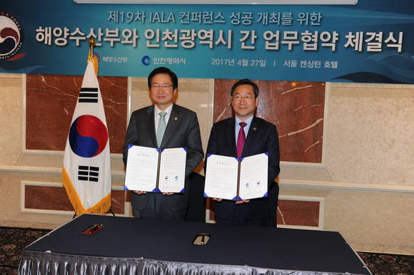 해양수산부(장관 김영석)는 27일(목) 인천광역시(시장 유정복)와 ‘제19차 국제항로표지협회(IALA*) 콘퍼런스’의 성공적인 개최를 위한 업무협약을 체결하였다고 밝혔다.