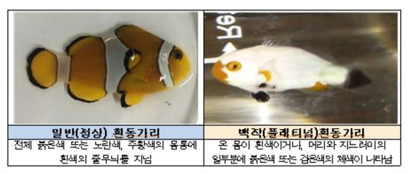 국립수산과학원(원장 서장우)은 일반적인 흰동가리(크라운피쉬, clownfish)와 다른 희귀한 개체를 생산할 수 있는 어미 집단을 확보하여, 독특한 모습을 지닌 백작*흰동가리 종자를 생산하는 데 성공하였다고 밝혔다.