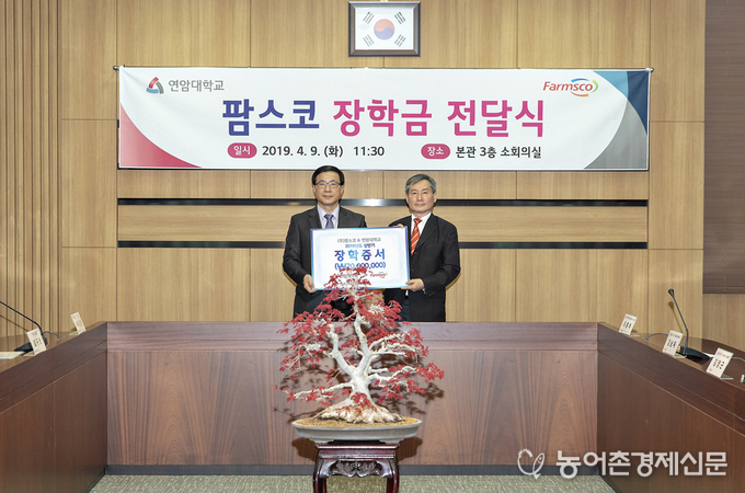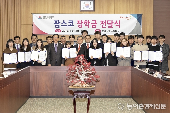 축산식품전문기업인 ㈜팜스코는 지난 4월 9일 연암대학교 재학생 20명을 대상으로 장학금을 전달하였다.